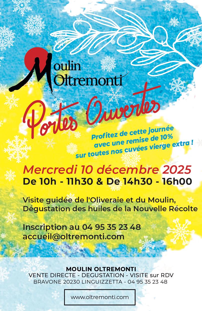 JOURNÉE PORTES OUVERTES AU MOULIN OLTREMONTI – LINGUIZZETTA – Visites guidées et dégustations à 10h et à 14h30