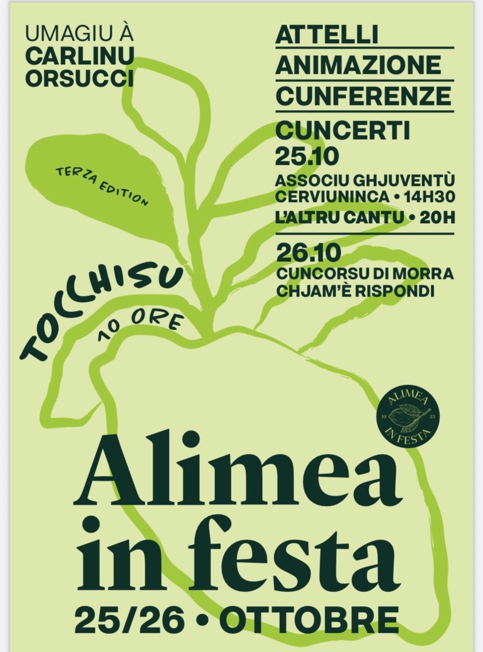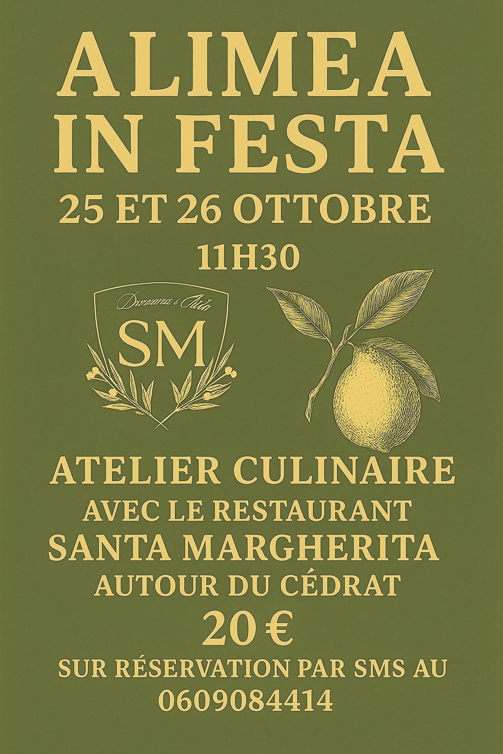 Craft fair: ALIMEA in Festa - Come along to the village of Tox for the 3rd edition of Alimea in Festa. Activities and demonstrations on the theme of the citron Throughout the weekend, a host of producers and artisans will be on hand at the craft fair. The little ones can enjoy pony rides with Capra Parc. Programme for the 3rd edition: Saturday 25 October : 11.30am - Cooking workshop Take part in a gourmet experience led by a passionate chef, who will teach you how to prepare a dish and a dessert based on citron. You'll go home with your own recipes and lots of ideas for treating your friends and family! Price: €20/person. Registration by text message to 06 09 08 44 14 In the evening - Concert by the group L'Altru Cantu Guaranteed atmosphere with Corsican songs and variety shows! Sunday 26 October : 11am - Lecture by Ghjuvan Lucca Luciani 11.30am - Cooking workshop Take part in a gourmet experience led by a passionate chef, who will teach you how to prepare a dish and dessert based on citron. You'll go home with your own recipes and lots of ideas for treating your friends and family! Price: €20/person. Registration by text message to 06 09 08 44 14 12pm - Tribute to Carlinu Orsucci Singing poetry and honouring the "Chjami è Rispondi" tradition 3pm - Shampoo creation workshop. Immerse yourself in the scents of the Corsican citron and make your own natural artisanal shampoo with Realia, a local cosmetics artisan. Price: €10/person.