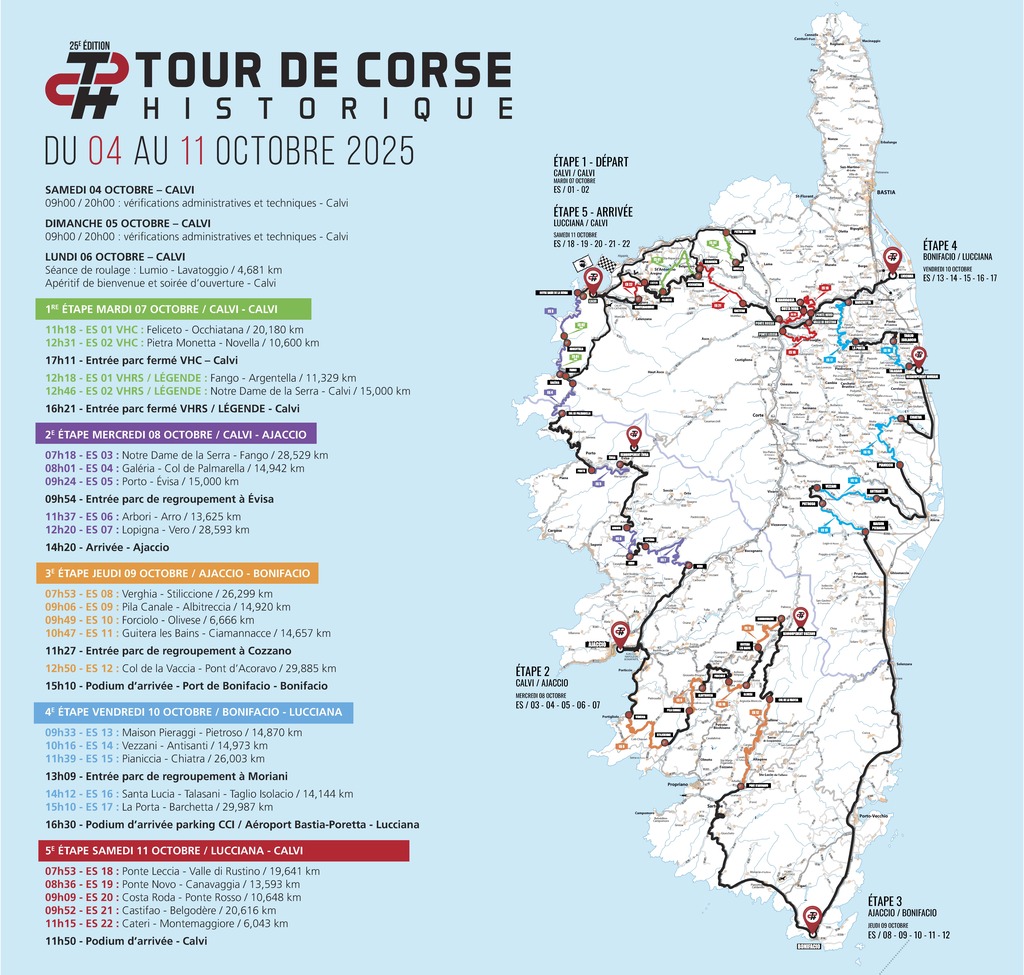 The 25th edition of the Tour de Corse Historique Automobile will take place in Oriente on Friday 10 October 2025 in the municipalities of ANTISANTI - TALLONE and CHIATRA. Two special stages are scheduled in the Oriente region: at 10.16am: SS 14 - Vezzani / Antisanti and at 11.39am: SS 15 - Pianiccia/ Chiatra di Verde. More details: https://www.tourdecorse-historique.fr/