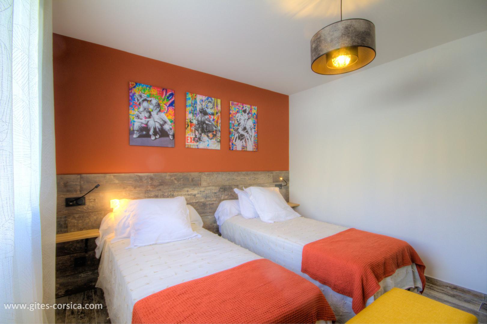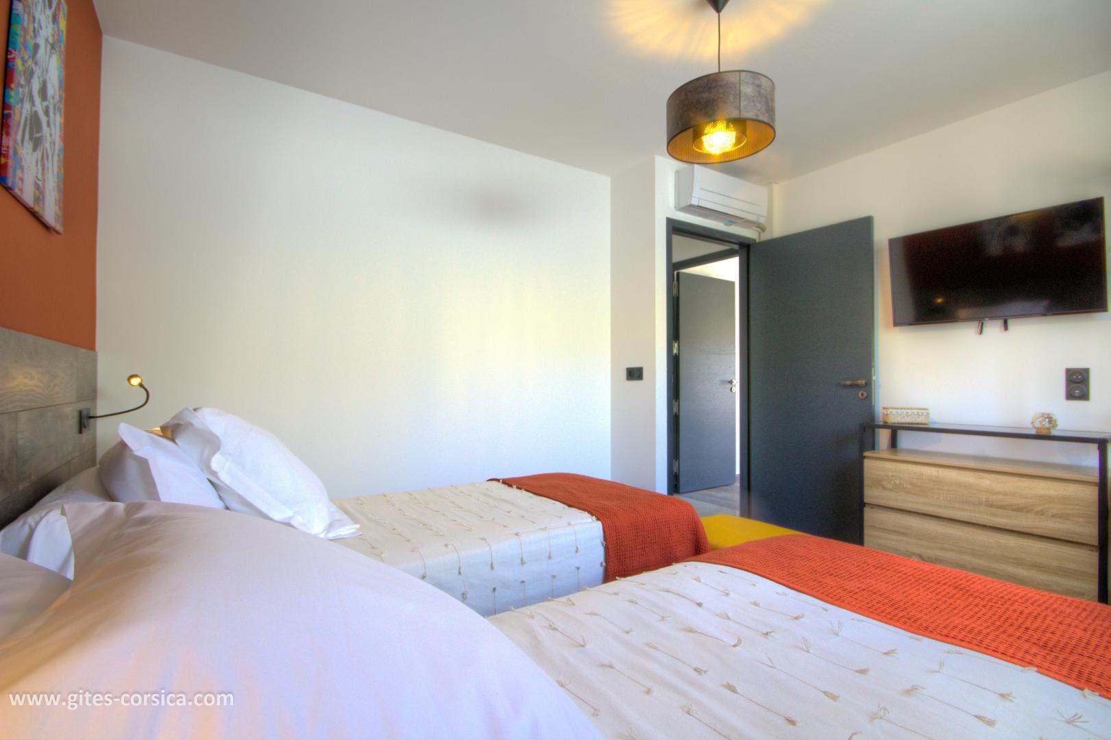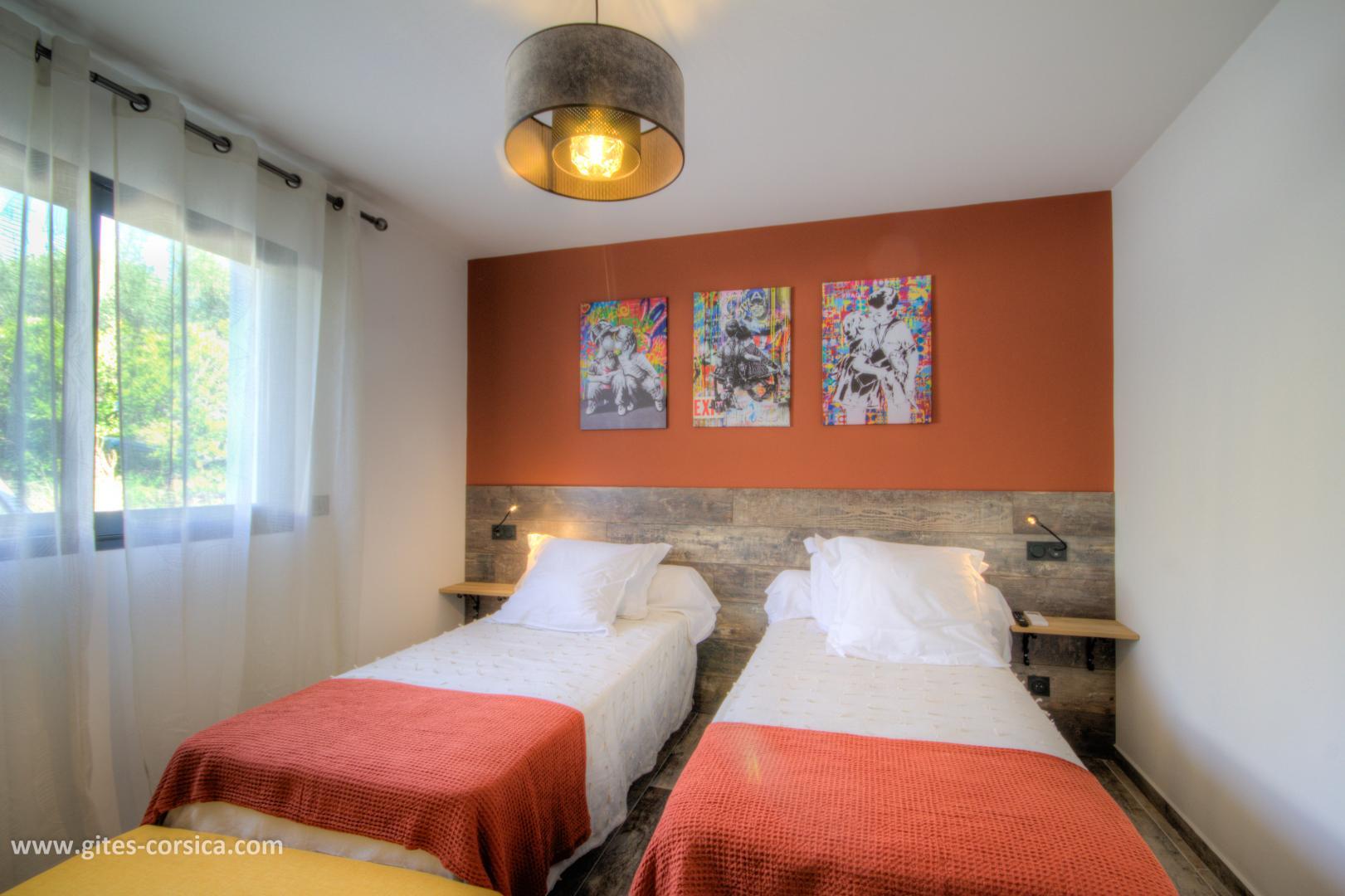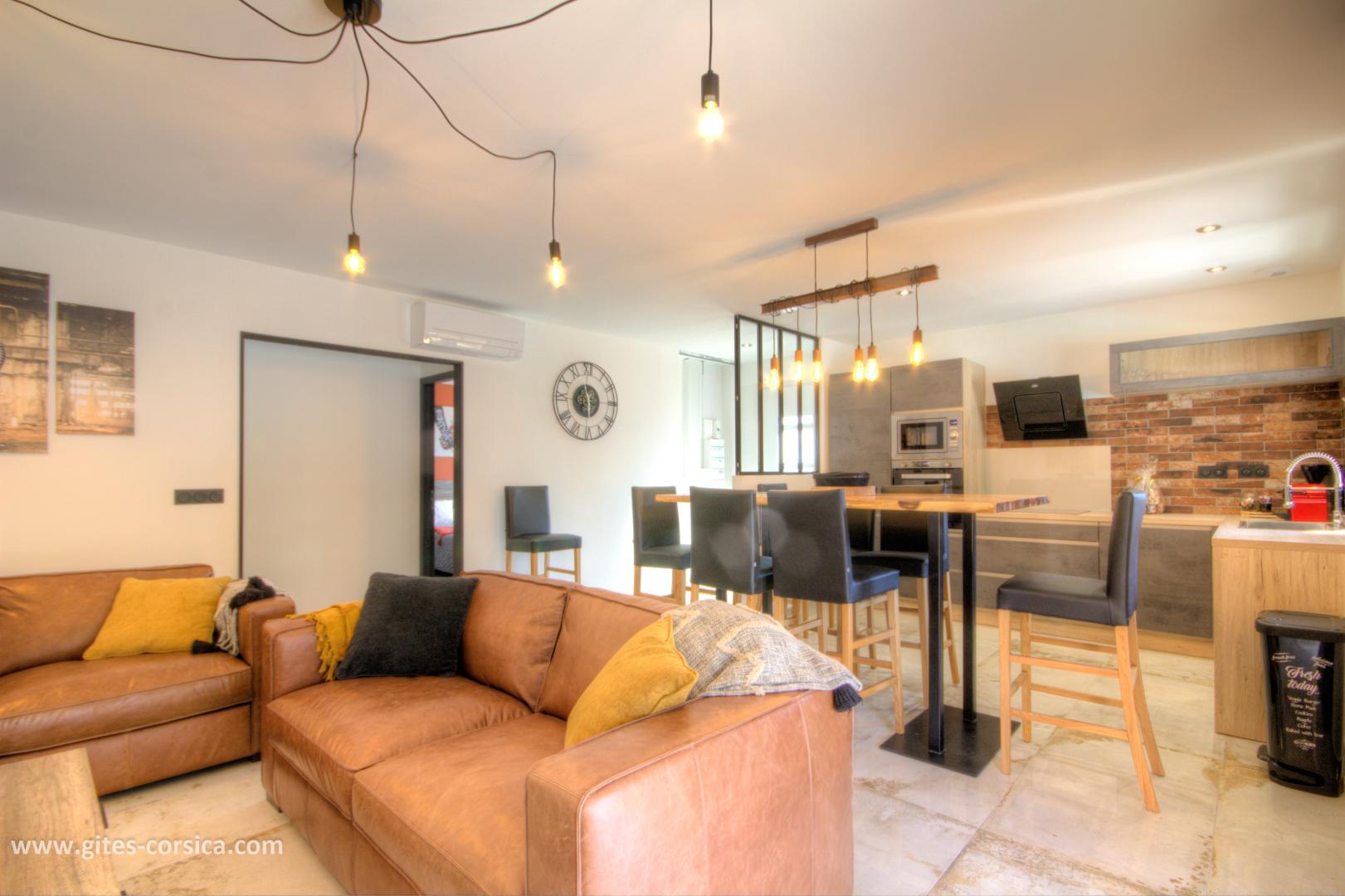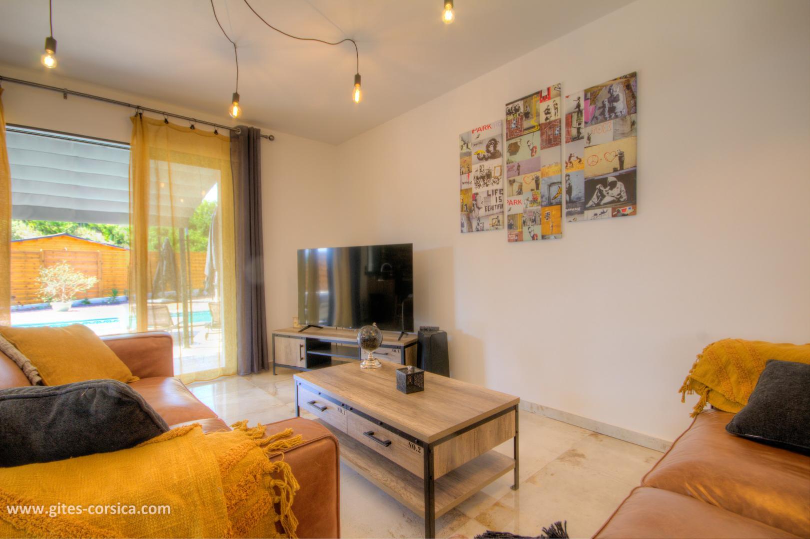 Sur une propriété de 6000 m² dans la plaine d'Antisanti, maison indépendante de 93 m² à proximité d'un autre gîte (63841). Elle se compose ainsi : - Séjour/cuisine - 2 chambres comprenant chacune 1 lit en 180x200 cm avec salle d'eau/WC privative - 1 chambre comprenant 2 lits en 90x200 cm - Salle d'eau - WC Propriété sous vidéosurveillance avec enregistrement des images. Le dispositif sera activé uniquement après accord du locataire. Le client devra faire part de son, accord ou de son refus à la signature du contrat de location - Terrasse de 250 m² - Salon de jardin - Salon de détente - 6 bains de soleil - Piscine (8x3,5 mètres, profondeur : 1,5mètres) ouverte et chauffée du 19 avril au 11 octobre, sécurisée par une alarme sonore. La piscine est à usage exclusif des locataires - Dans une espace bien-être fermé et chauffé avec salle d'eau/WC, spa (2.2x2.2 mètres : 3 places assises et deux places allongées, ou 7 places assises), ouvert toute l'année - Cuisine d'été avec plancha gaz, 2 feux gaz, évier et réfrigérateur - Borne de recharge électrique (7 kW) - Parking dans la propriété (portail électrique) En commun avec la deuxième location : - Salle de sport avec appareils de fitness (tapis de course, rameur, elliptique, vélo d'appartement), baby-foot, télévision, billard et enceinte connectée - Terrain de pétanque - Climatisation - Lave-linge séchant - Lave-vaisselle - Micro-ondes - Congélateur - Télévision dans le séjour et dans chaque chambre - Lecteur Blu-ray avec quelques DVD Blu-ray à disposition - Wi-Fi - Enceinte connectée - Sèche-cheveux - Sèche-serviettes - Lits faits à l'arrivée - Draps de piscine et de spa fournis A réserver auprès des propriétaires et en supplément : - Petit-déjeuner (salé, sucré ou continental) - à partir de 8€/personne - Séances de massages assurées par prestataire extérieur (tarifs selon carte) - Coiffeuse (tarifs selon carte) - Ménage en cours de séjour (tarifs définis sur place)