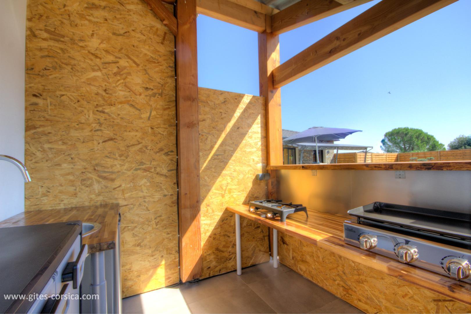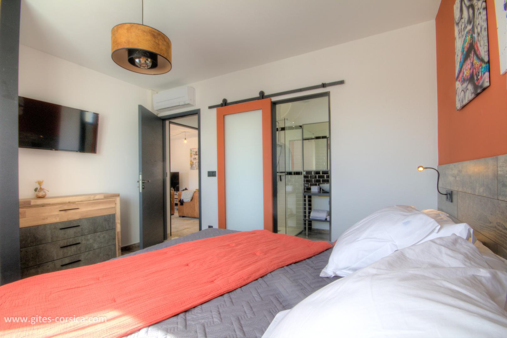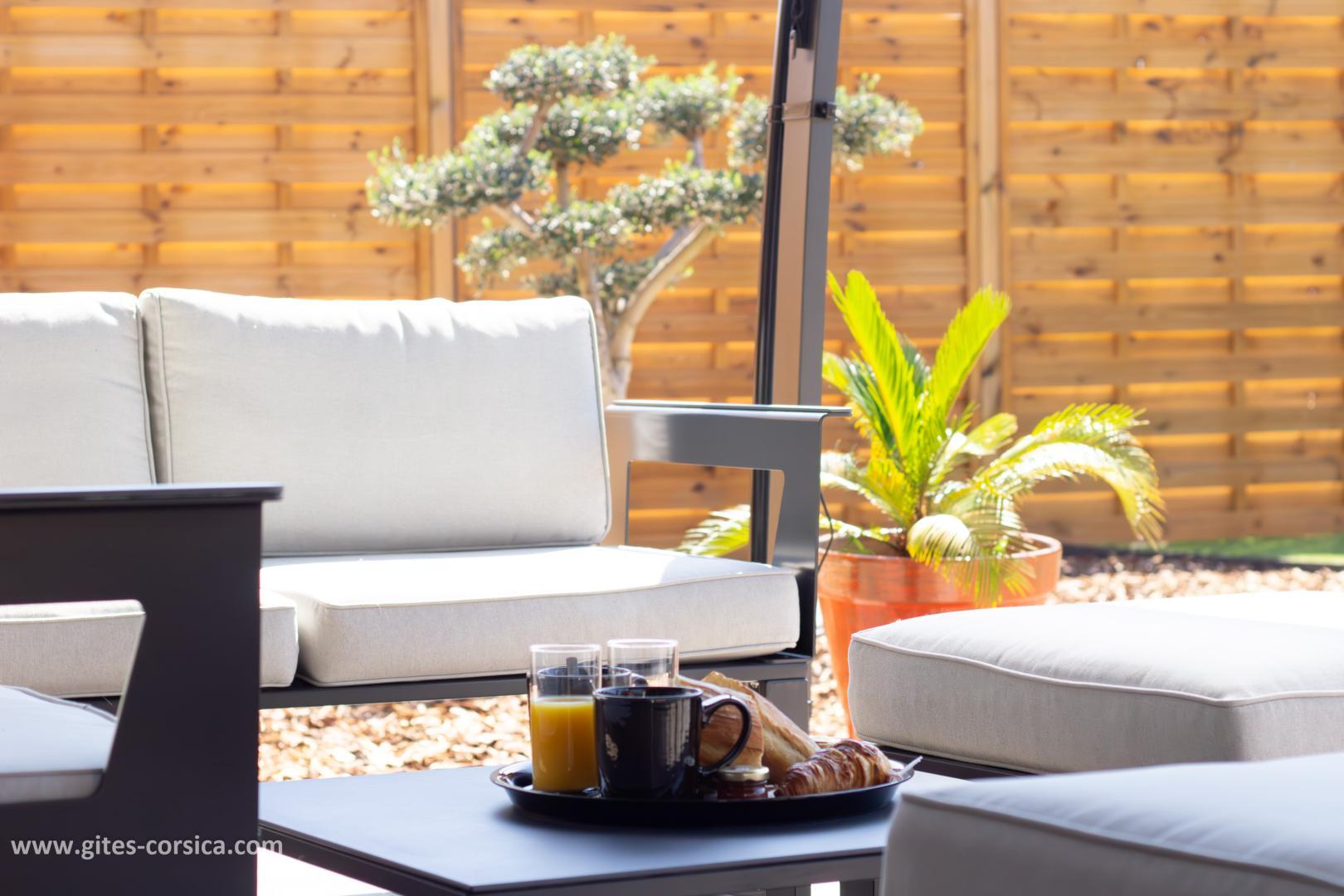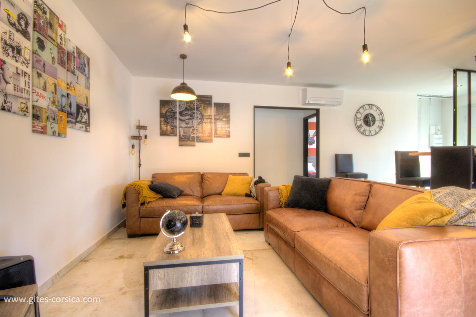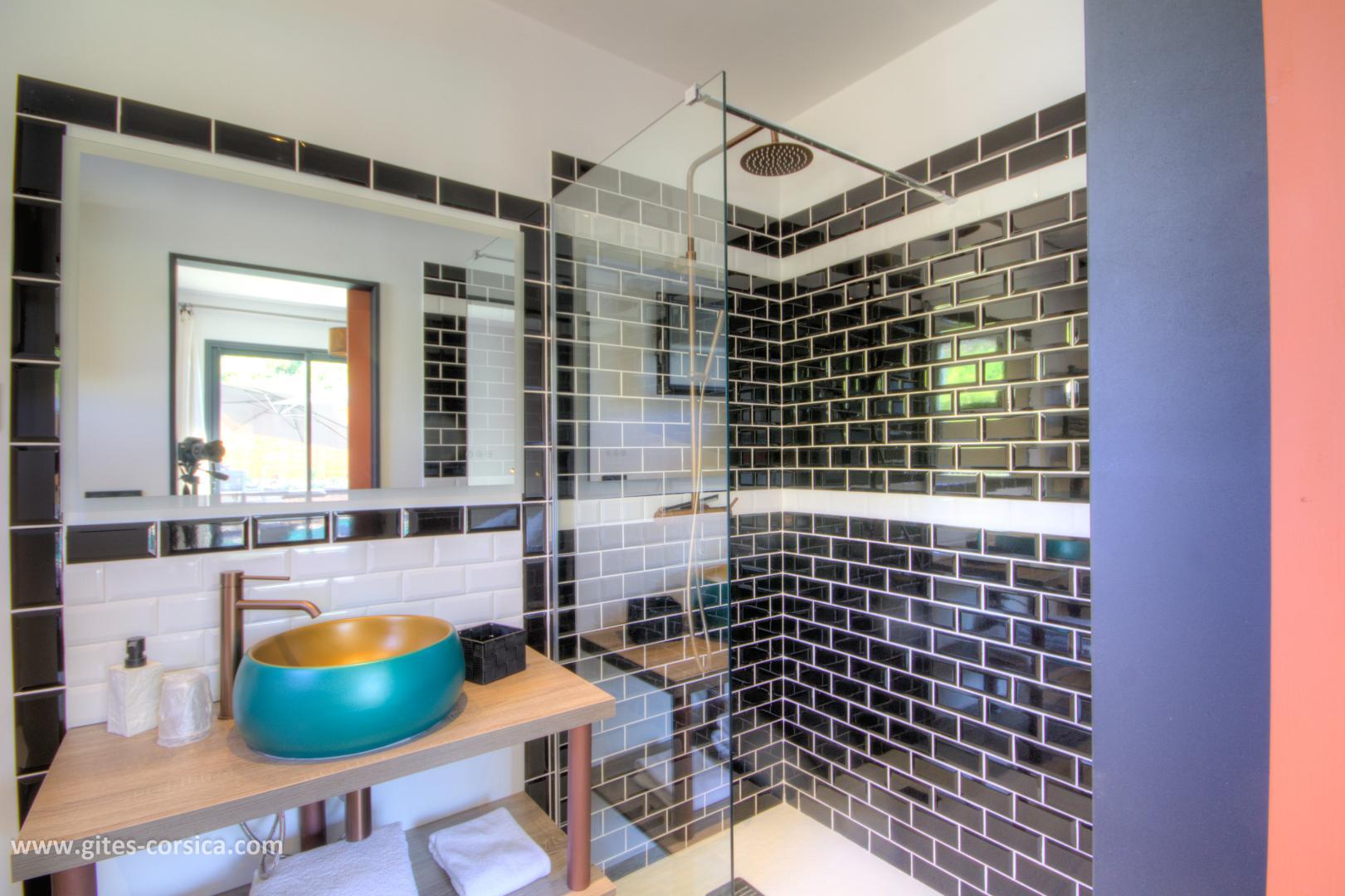 Sur une propriété de 6000 m² dans la plaine d'Antisanti, maison indépendante de 93 m² à proximité d'un autre gîte (63841). Elle se compose ainsi : - Séjour/cuisine - 2 chambres comprenant chacune 1 lit en 180x200 cm avec salle d'eau/WC privative - 1 chambre comprenant 2 lits en 90x200 cm - Salle d'eau - WC Propriété sous vidéosurveillance avec enregistrement des images. Le dispositif sera activé uniquement après accord du locataire. Le client devra faire part de son, accord ou de son refus à la signature du contrat de location - Terrasse de 250 m² - Salon de jardin - Salon de détente - 6 bains de soleil - Piscine (8x3,5 mètres, profondeur : 1,5mètres) ouverte et chauffée du 19 avril au 11 octobre, sécurisée par une alarme sonore. La piscine est à usage exclusif des locataires - Dans une espace bien-être fermé et chauffé avec salle d'eau/WC, spa (2.2x2.2 mètres : 3 places assises et deux places allongées, ou 7 places assises), ouvert toute l'année - Cuisine d'été avec plancha gaz, 2 feux gaz, évier et réfrigérateur - Borne de recharge électrique (7 kW) - Parking dans la propriété (portail électrique) En commun avec la deuxième location : - Salle de sport avec appareils de fitness (tapis de course, rameur, elliptique, vélo d'appartement), baby-foot, télévision, billard et enceinte connectée - Terrain de pétanque - Climatisation - Lave-linge séchant - Lave-vaisselle - Micro-ondes - Congélateur - Télévision dans le séjour et dans chaque chambre - Lecteur Blu-ray avec quelques DVD Blu-ray à disposition - Wi-Fi - Enceinte connectée - Sèche-cheveux - Sèche-serviettes - Lits faits à l'arrivée - Draps de piscine et de spa fournis A réserver auprès des propriétaires et en supplément : - Petit-déjeuner (salé, sucré ou continental) - à partir de 8€/personne - Séances de massages assurées par prestataire extérieur (tarifs selon carte) - Coiffeuse (tarifs selon carte) - Ménage en cours de séjour (tarifs définis sur place)