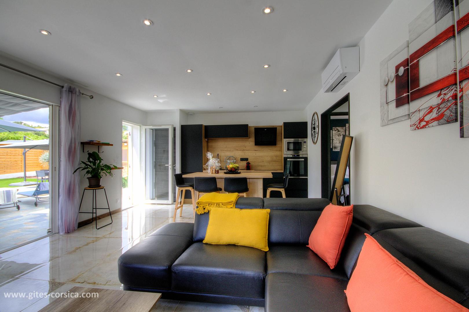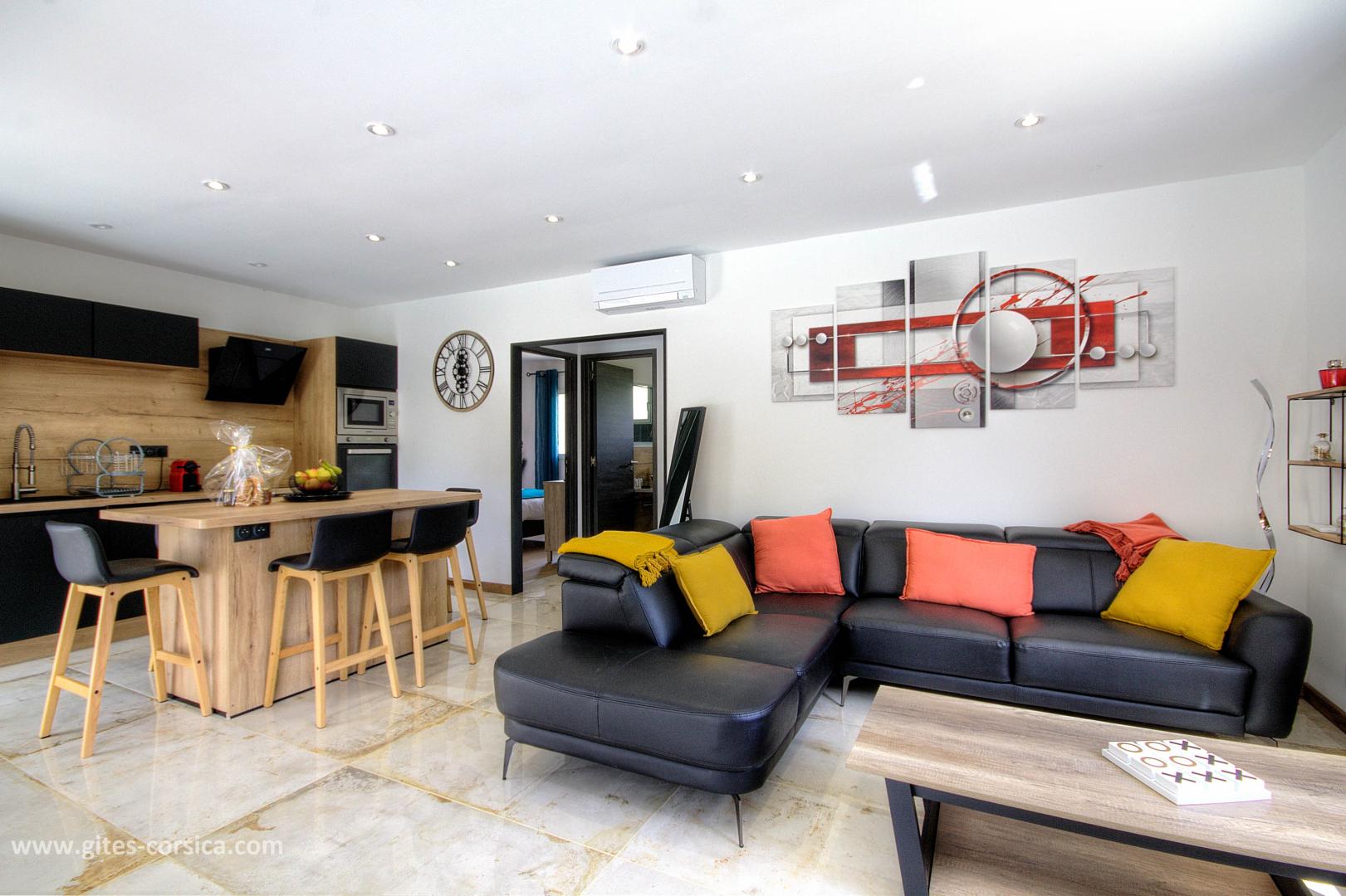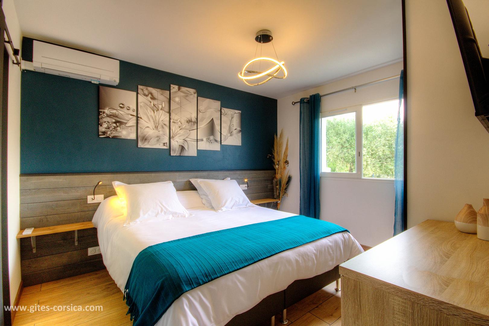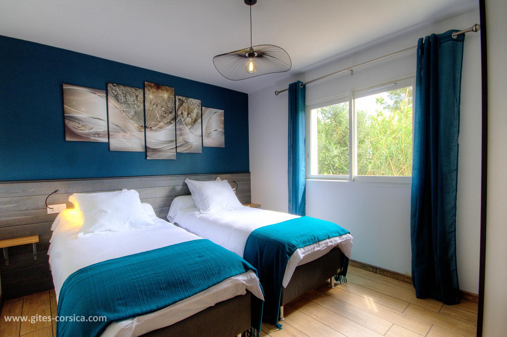 Sur une propriété de 6000 m² dans la plaine d'Antisanti, maison indépendante de 66 m² à proximité d'un autre gite (63842). Elle se compose ainsi : - Séjour/cuisine -1 chambre comprenant 1 lit en 180x200 cm avec salle d'eau/WC privative - 1 chambre comprenant 2 lits en 90x200 cm jumelables - Salle d'eau/WC Propriété sous vidéosurveillance avec enregistrement des images. Le dispositif sera activé uniquement après accord du locataire. Le client devra faire part de son, accord ou de son refus à la signature du contrat de location - Terrain privatif clos de 1000 m² - Terrasse de 70 m² dont 14 m² couverte - Salon de jardin - Salon de détente - 4 bains de soleil - Piscine (7,5x3,5 mètres, profondeur : 1,5mètres) ouverte et chauffée du 19 avril au 11 octobre, sécurisée par une alarme sonore. La piscine est à usage exclusif des locataires - Spa (2.2x2.2 mètres : 3 places assises et deux places allongées, ou 7 places assises), ouvert toute l'année, avec salle d'eau/WC - Cuisine d'été avec plancha gaz, feux gaz et réfrigérateur - Borne de recharge électrique (7 kW) - 2 places de stationnement dans la propriété (portail électrique à bip) En commun avec la deuxième location : - Salle de sport avec appareils de fitness (tapis de course, rameur, elliptique, vélo d'appartement), baby-foot, télévision, billard et enceinte connectée - Terrain de pétanque - Climatisation dans le séjour/cuisine et les 2 chambres - Combiné lave-linge/sèche-linge - Lave-vaisselle - Micro-ondes - Compartiment congélateur - Télévision dans le séjour et les 2 chambres - Wifi - Sèche-cheveux - Sèche-serviette - Lits faits à l'arrivée A réserver auprès des propriétaires et en supplément : - Petit-déjeuner (salé, sucré ou continental) - à partir de 8€/personne - Séances de massages (tarifs selon carte) - Coiffeuse (tarifs selon carte) - Ménage en cours de séjour (tarifs définis sur place)
