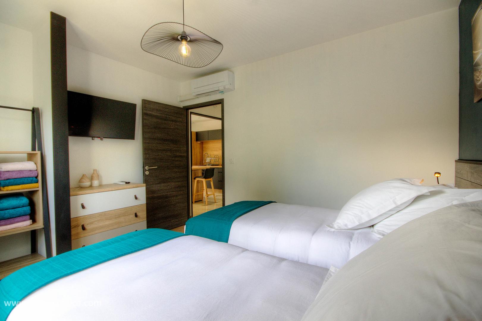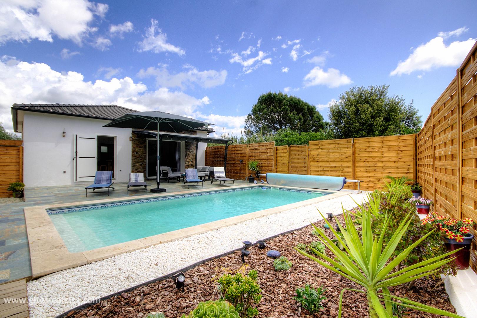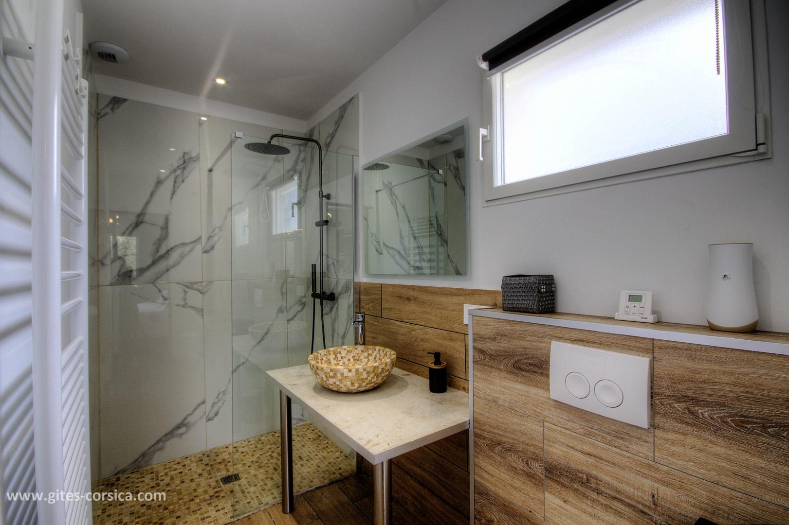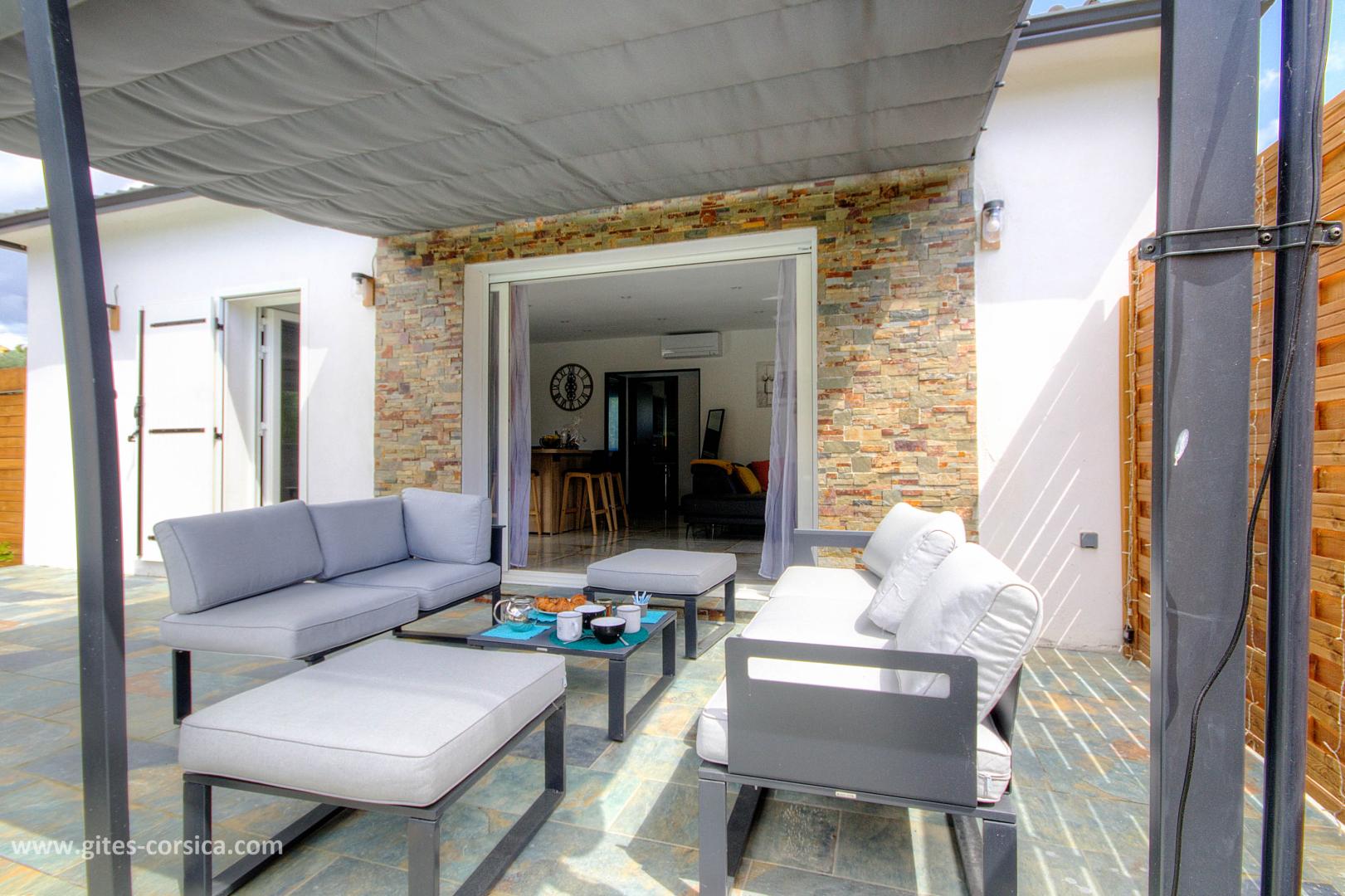 Sur une propriété de 6000 m² dans la plaine d'Antisanti, maison indépendante de 66 m² à proximité d'un autre gite (63842). Elle se compose ainsi : - Séjour/cuisine -1 chambre comprenant 1 lit en 180x200 cm avec salle d'eau/WC privative - 1 chambre comprenant 2 lits en 90x200 cm jumelables - Salle d'eau/WC Propriété sous vidéosurveillance avec enregistrement des images. Le dispositif sera activé uniquement après accord du locataire. Le client devra faire part de son, accord ou de son refus à la signature du contrat de location - Terrain privatif clos de 1000 m² - Terrasse de 70 m² dont 14 m² couverte - Salon de jardin - Salon de détente - 4 bains de soleil - Piscine (7,5x3,5 mètres, profondeur : 1,5mètres) ouverte et chauffée du 19 avril au 11 octobre, sécurisée par une alarme sonore. La piscine est à usage exclusif des locataires - Spa (2.2x2.2 mètres : 3 places assises et deux places allongées, ou 7 places assises), ouvert toute l'année, avec salle d'eau/WC - Cuisine d'été avec plancha gaz, feux gaz et réfrigérateur - Borne de recharge électrique (7 kW) - 2 places de stationnement dans la propriété (portail électrique à bip) En commun avec la deuxième location : - Salle de sport avec appareils de fitness (tapis de course, rameur, elliptique, vélo d'appartement), baby-foot, télévision, billard et enceinte connectée - Terrain de pétanque - Climatisation dans le séjour/cuisine et les 2 chambres - Combiné lave-linge/sèche-linge - Lave-vaisselle - Micro-ondes - Compartiment congélateur - Télévision dans le séjour et les 2 chambres - Wifi - Sèche-cheveux - Sèche-serviette - Lits faits à l'arrivée A réserver auprès des propriétaires et en supplément : - Petit-déjeuner (salé, sucré ou continental) - à partir de 8€/personne - Séances de massages (tarifs selon carte) - Coiffeuse (tarifs selon carte) - Ménage en cours de séjour (tarifs définis sur place)