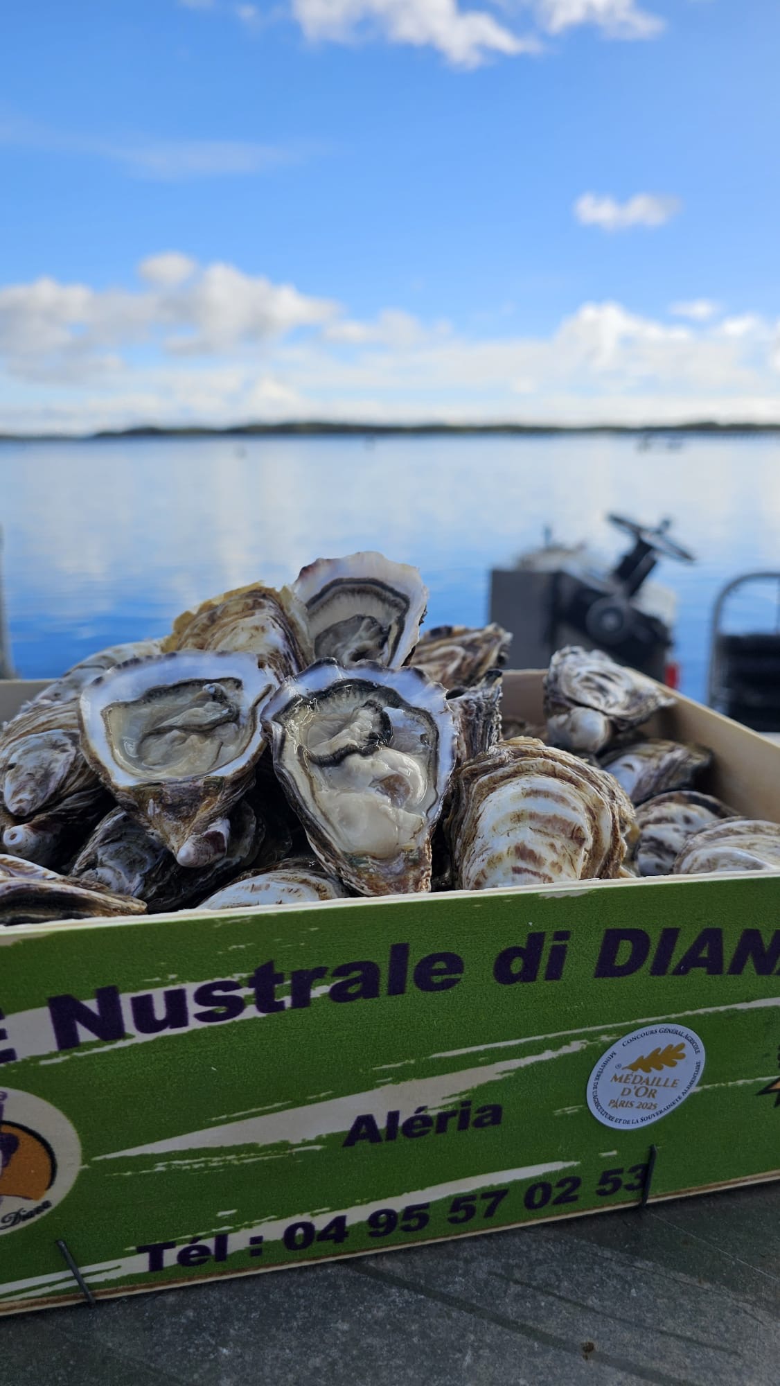 Da oltre 60 anni cerchiamo di offrire ai nostri clienti i prodotti che meritano, per accompagnare le ricette più raffinate o da gustare al naturale. L'ostrica NUSTRALE di DIANA si riconosce per la sua conchiglia rotonda, la polpa abbondante e il pronunciato sapore di nocciola. Anche quest'anno, un'illuminata giuria del Salon de l'Agriculture di Parigi le ha assegnato la medaglia d'oro al Concours Général Agricole. Accanto a questa produzione, che identifica l'Etang de Diana, coltiviamo anche le cozze "NUSTRALE", ingrediente essenziale della cucina estiva. Un punto vendita vi permetterà di acquistare questi prodotti durante tutto l'anno, con la certezza di beneficiare di una freschezza sempre rinnovata. Primavera 2026: una novità da non perdere! Un'esperienza di degustazione unica (*) direttamente sull'acqua, nel cuore dell'allevamento di ostriche e cozze! Venite a degustare i nostri molluschi direttamente sul posto, ai bordi dello stagno dove vivono e crescono le nostre ostriche Nustrale di Diana. Lasciatevi trasportare da questo momento di sapori autentici e sensazioni vive.